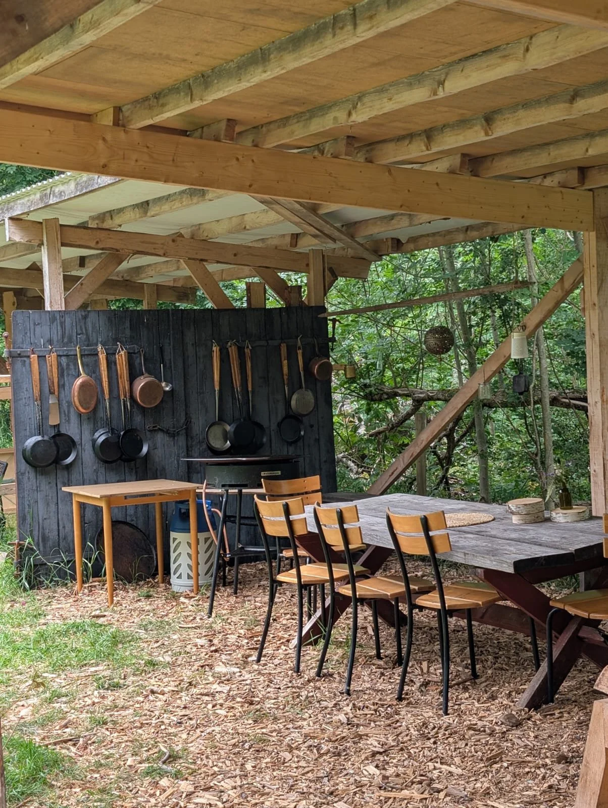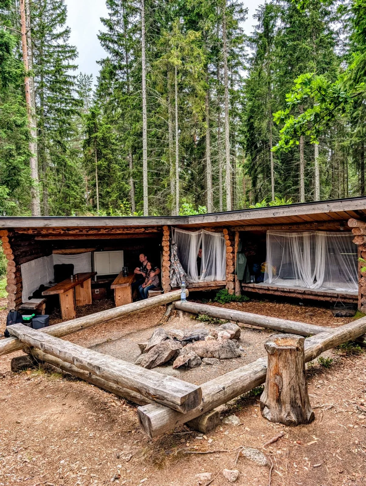 Als unser Sohn sie schon von weitem sah begann er freudestrahlen hin zu rennen. Auch wir waren sofort verliebt in dieses süße kleine Camp mitten im Wald. Man kann es sich vorstellen wie so Wanderer Windschutzhütten. Eine überdacht mit Sitzmöglichkeiten und zwei weitere zum schlafen.