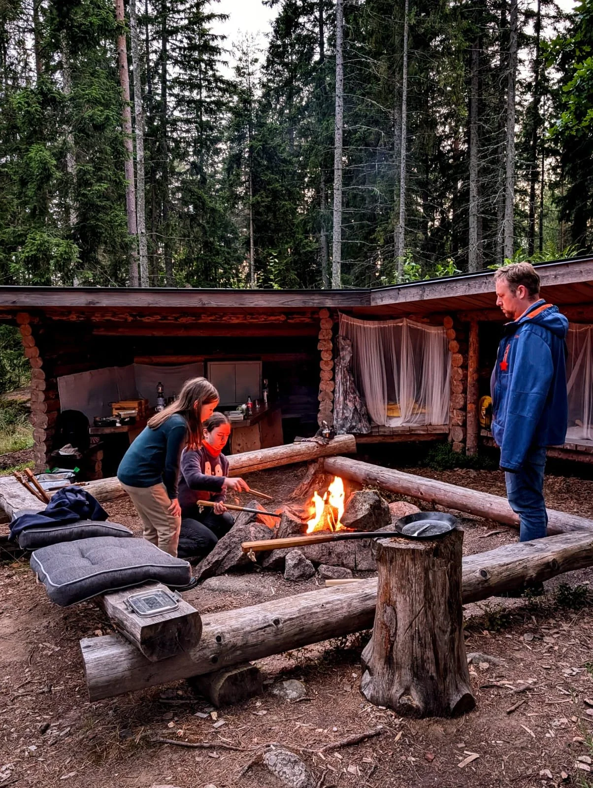 Vier Menschen, eine Hütte, keine Ablenkung,nur wir, das Prasseln der Flammen und das leise Rascheln des Waldes. Wir hatten auch wirklich Glück mit dem Wetter und so wenige, fast keine Mücken!