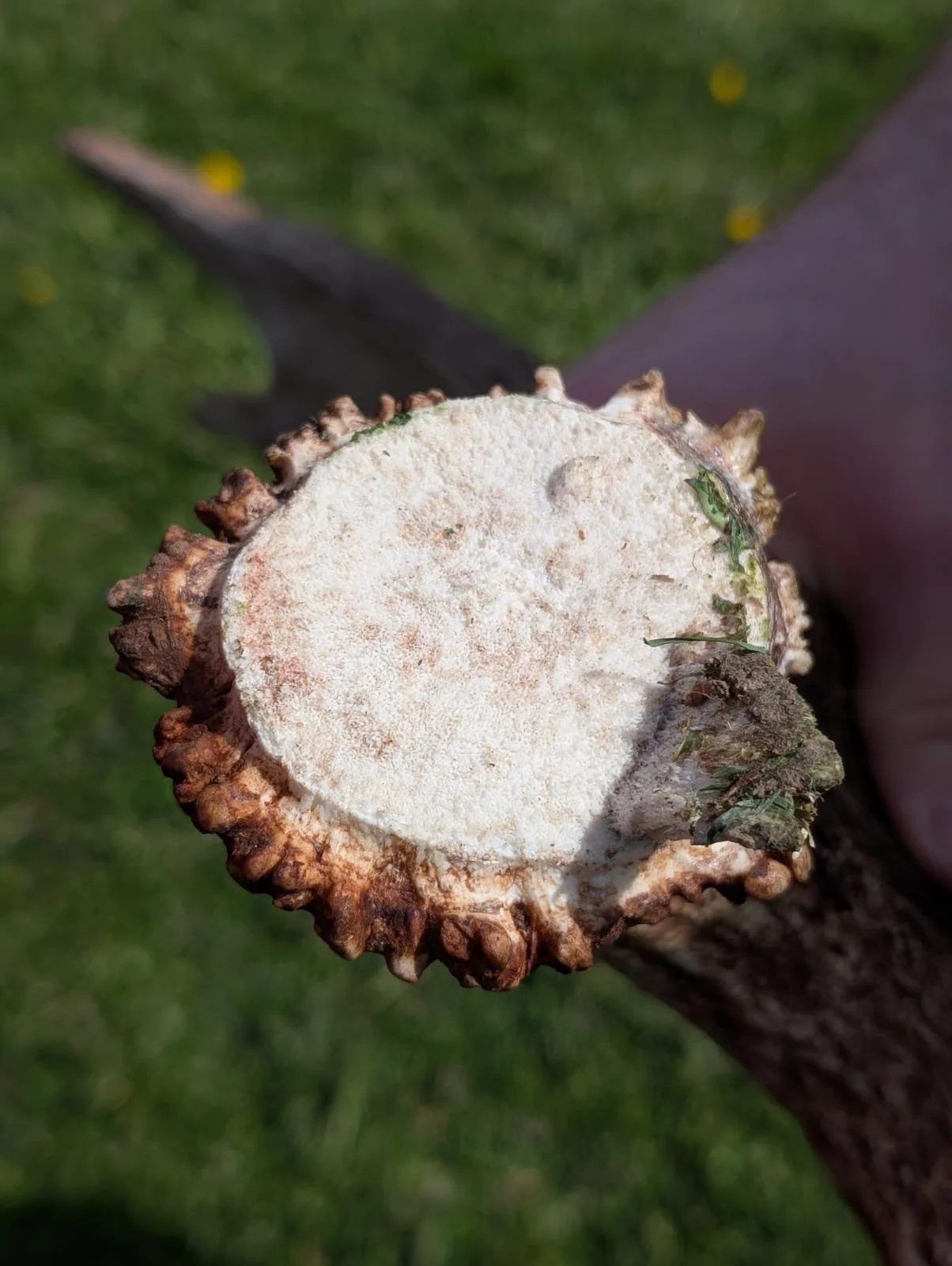 Elchgeweihe bestehen aus Knochengewebe – genauer gesagt aus verkalktem Bindegewebe, ähnlich wie unsere Knochen. Es handelt sich um echten Knochen, der jedes Jahr neu wächst und wieder abgeworfen wird. Im Frühling beginnt der Geweihaufbau, zunächst mit einer weichen, samtartigen Haut namens Bast, die das Geweih mit Blut und Nährstoffen versorgt. Wenn das Geweih vollständig ausgehärtet ist (meist im Spätsommer), wird der Bast abgestreift. Im Winter werfen Elche ihr Geweih dann ab – und der Zyklus beginnt im nächsten Jahr erneut. Super spannend.
