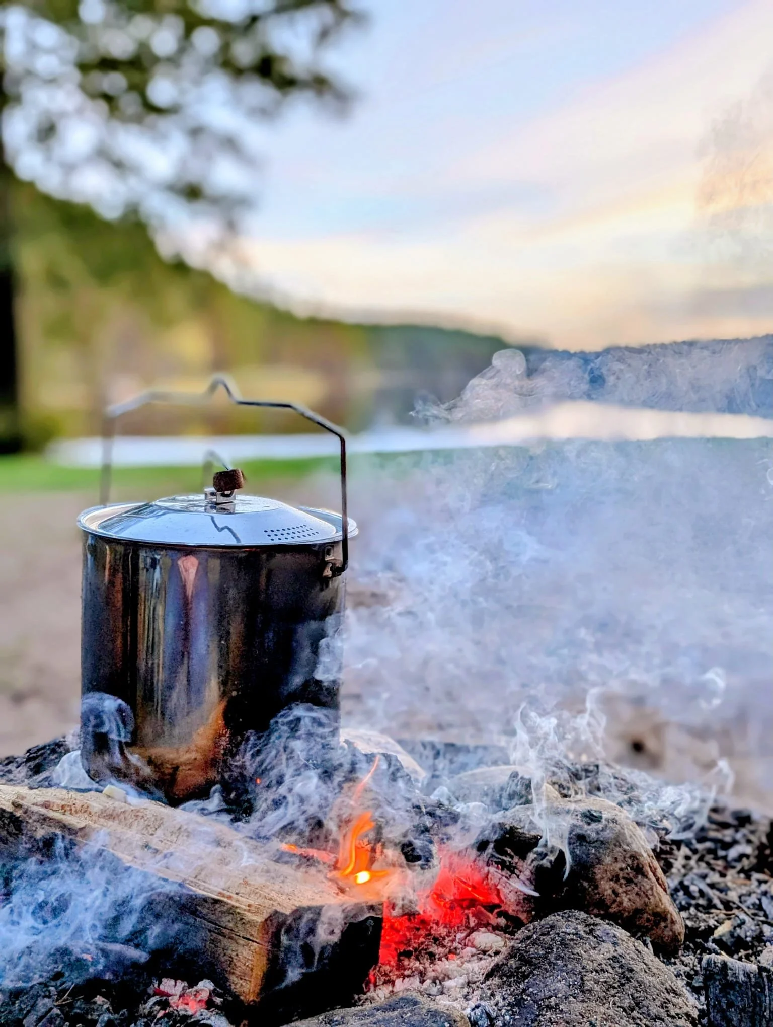 Ein typischer Tag im Norden beginnt oft damit, dass wir uns Schicht für Schicht anziehen bevor wir vor die Tür treten. Joachim kümmert sich ums Feuerholz, die Kids finden fast immer einen riesigen Stein, auf den sie klettern und ich breite irgendwo zwischen Moos und Felsen ein kleines Picknick aus. Manchmal ist es nur eine Tasse heißer Tee im Thermobecher, manchmal eine Suppe, die nach Rauch schmeckt, weil sie über offener Glut gekocht wurde.